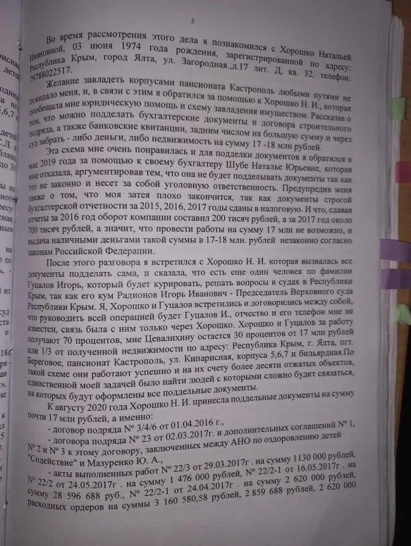 Все вопросы в судах и правоохранительных органах решает, возможно, Гуцайло Игорь и его кум — председатель Верховного суда Республики Крым — Радионов Игорь Иванович, как стало известно из заявления Цевалихина Ю.А.