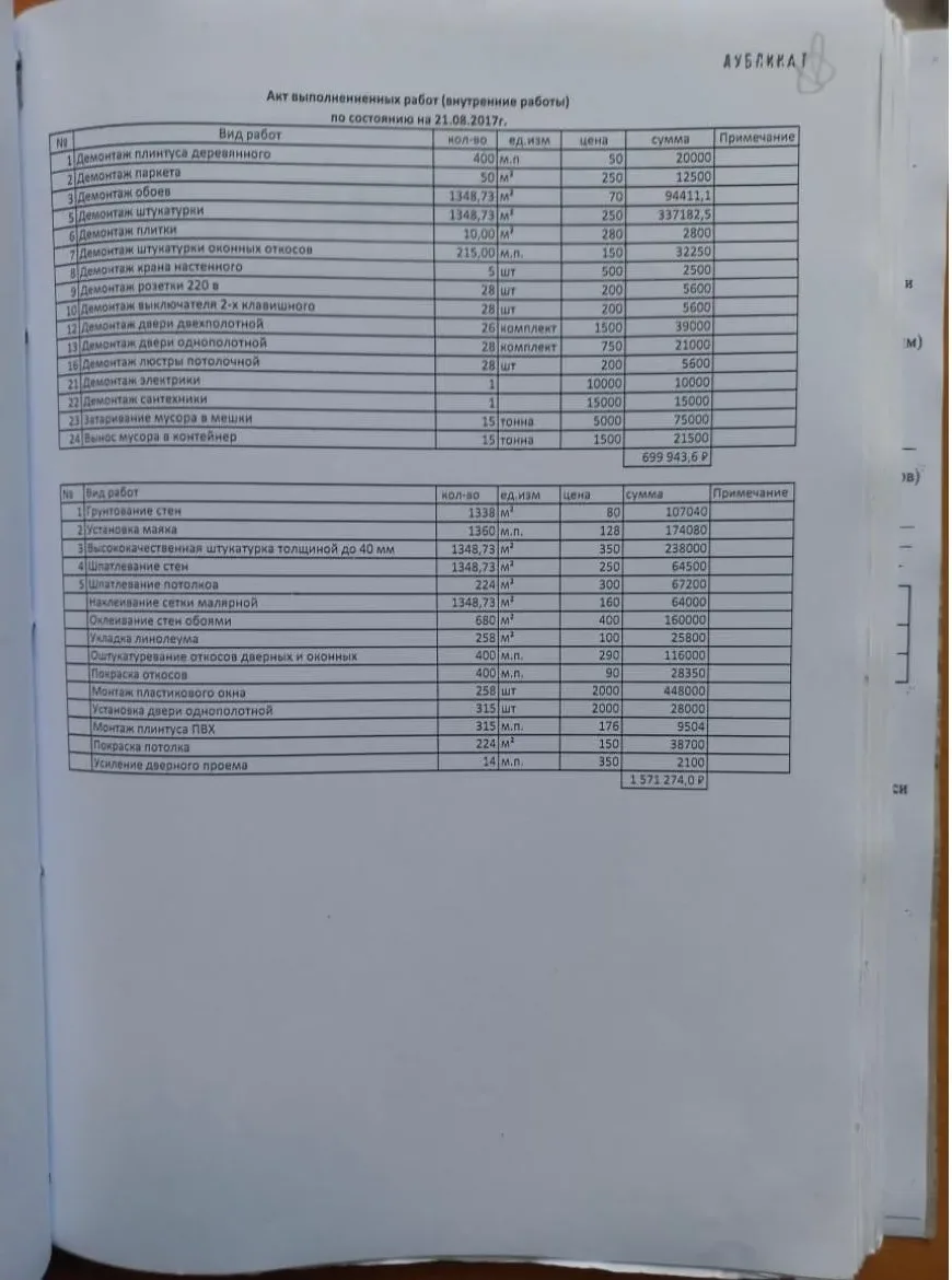 Фото поддельных документов, предоставленных в суд директором АНО «Содействие» Цевалихиным, как “неопровержимые” доказательства, якобы проведенных им работ: